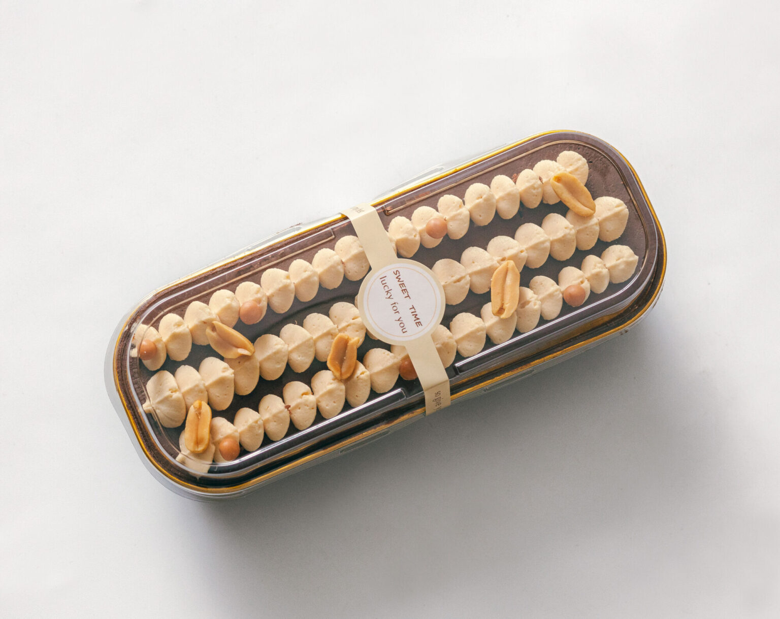 Základ tvoří arašídový piškot, vláčný, jemný a s tou typickou, lehce slanou chutí, díky které arašídy v dezertech nepůsobí těžce.