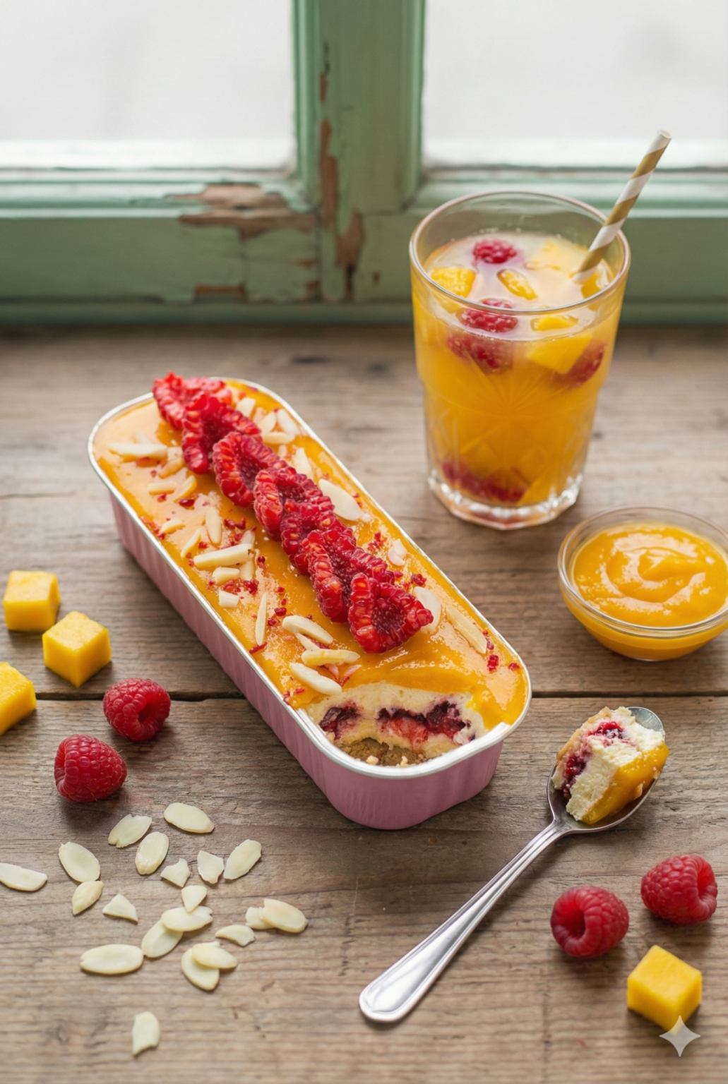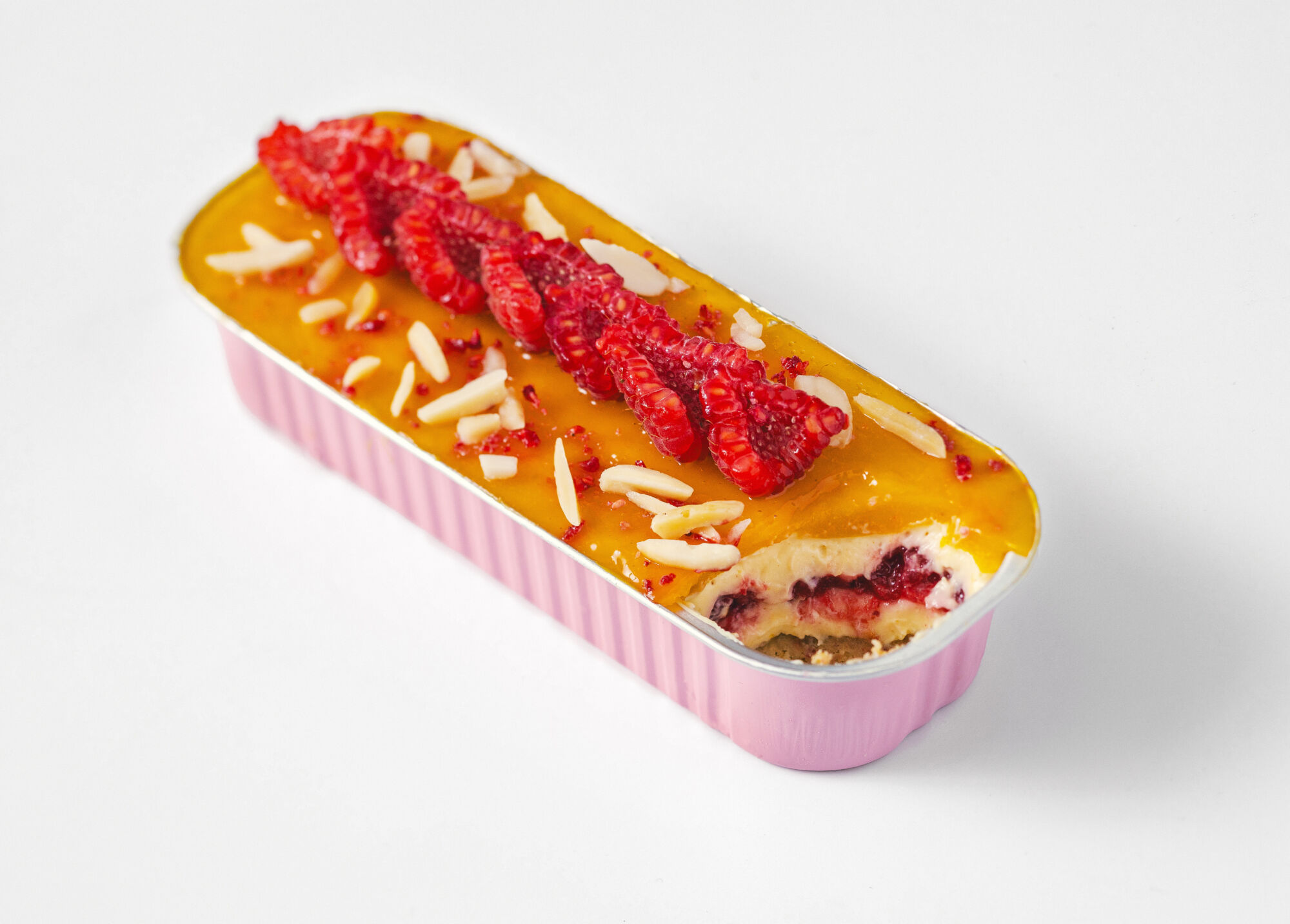 Petit cake pečený Cheesecake s kořeněným mangem a malinami